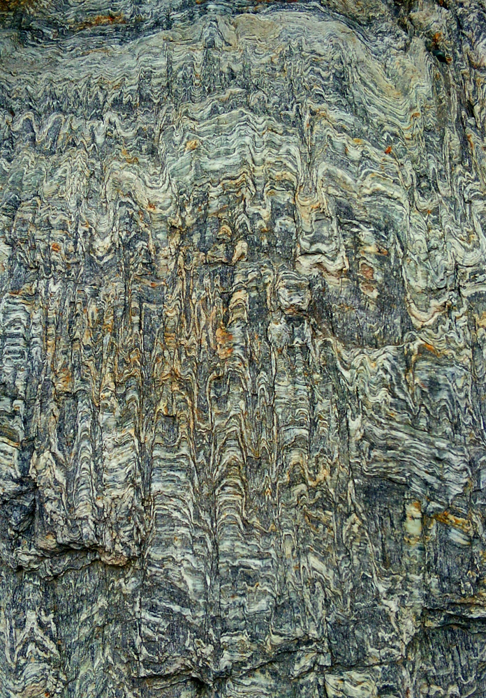 三波川帯の泥質起源の結晶片岩.微褶曲がきれいだったのでそこに注目しました.