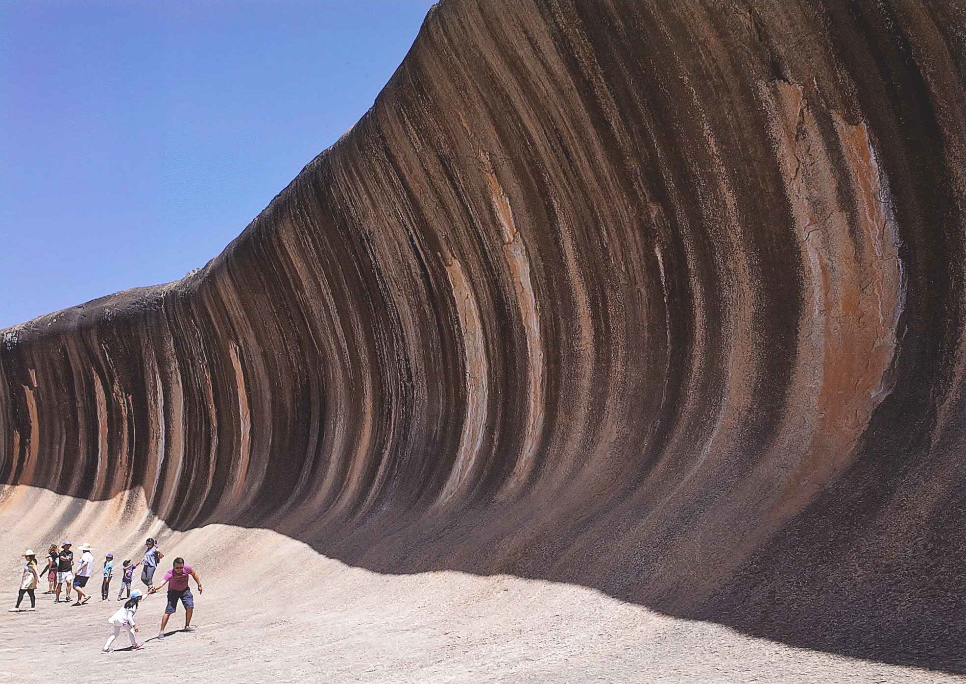 パースからエスペランスにダイビングに行く途中、休憩に立ち寄ったのがこのウェーブロック。高さ15m、長さ100mの波のような造形美は圧巻。特に岩肌の模様は大自然が作り上げたアートそのものである。