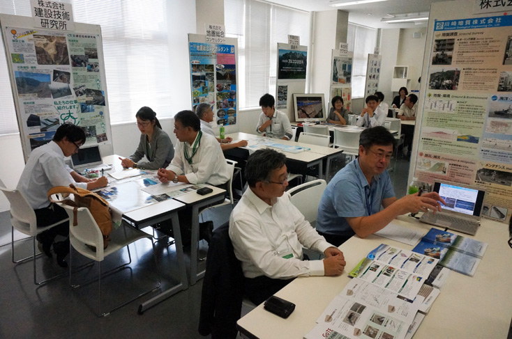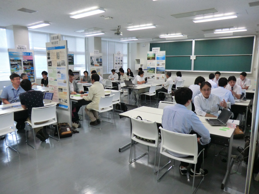 今年は阪神淡路大震災から20年,東日本大震災から4年の年になり,“防災”や“環境”に関して重要な理学である地質学に対して社会的要請が一層強くなった年であった.また,今後の日本のエネルギー政策として“地熱”・“地下資源”も注目を集めている.地質学会では,実際に企業で活躍されている地質技術者と語り合い,大学で学んだ地質学が企業でどのように生かされているのか,学生・大学院生および教員の方々が,企業の生の声を聴くことができるような場を提供したいと考え,今年も本企画を開催した.今回は9回目で,経団連の「採用選考に関する指針」を踏まえて行っている.例年と同様に,大会2日目の午後2時半から5時まで行い,昨年より更に多い民間企業12社にご参加頂いた.